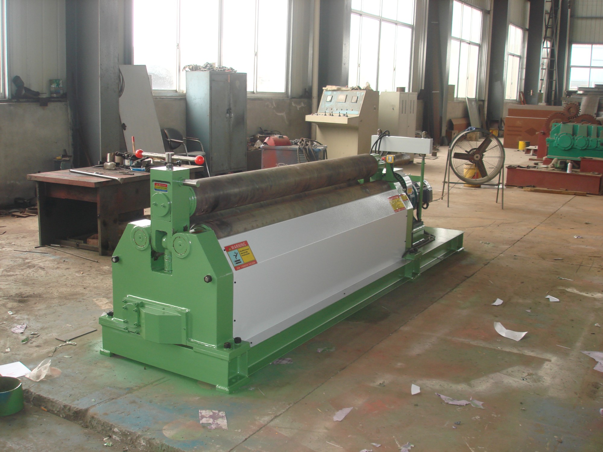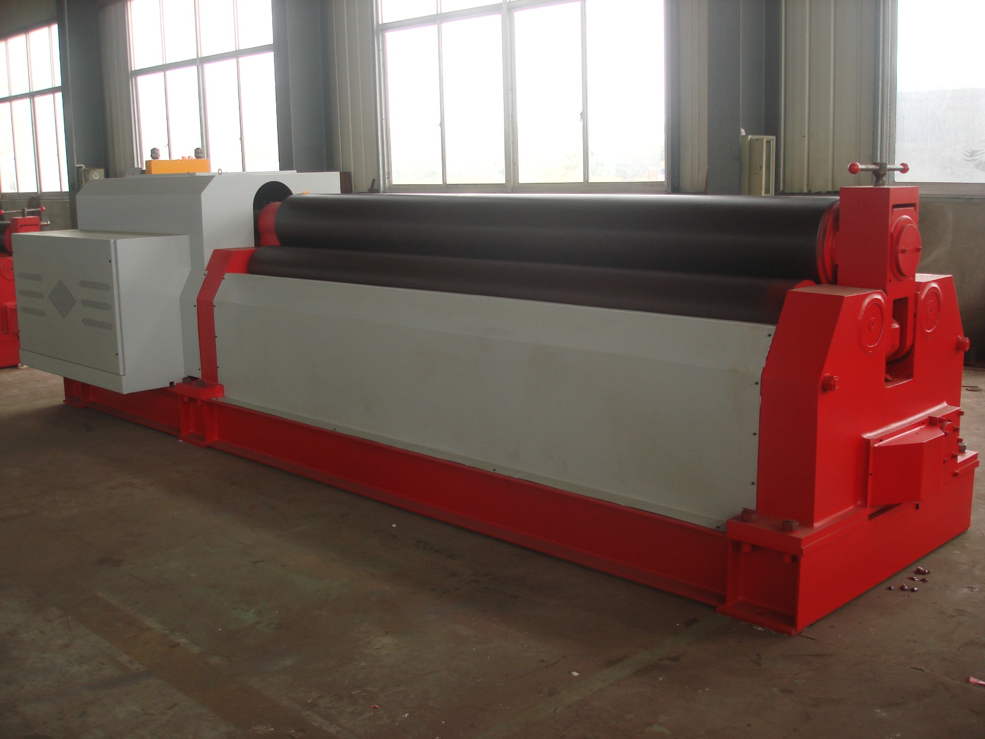 The two lower rollers are active rollers, driven by the main motor, coupling, reducer and open gear pair. When the upper roll is working, it is driven by the friction between the steel plates. At the same time, as a driven shaft, it plays the role of adjusting extrusion. Controlled by a separate transmission system, the main components are: upper roller lifting motor, reducer, worm gear pair, nut. When working, the worm gear pair rotates the inner nut of the worm gear to make the screw and the bearing seat of the upper roll move up and down. The two lower rollers can rotate positively and negatively in two directions, and the lower rollers roll repeatedly under the pressure of the upper rollers, so that the sheet material reaches the required curvature and forms the expected shape.